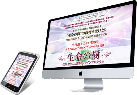 プログラムの6か月間、専用のメンバーズページにて毎月、小西 温子による「生命の樹」に関する動画などのコンテンツと、その他、お楽しみいただけるサービスを会員限定サイトにアップ致します。お持ちのPCやタブレット端末・スマホからアクセスしていただき視聴いただくプログラムです。