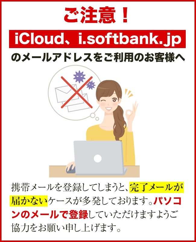 ※ご登録時のメールアドレスは 必ずお忘れにならないようにお願いいたします。