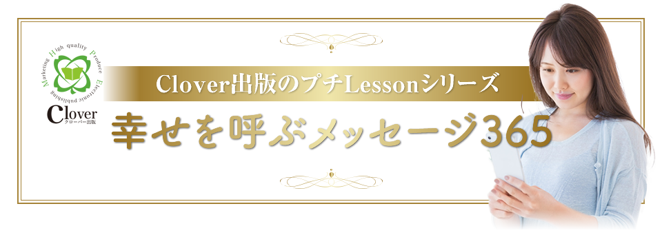 そんな思いを抱える方のために考案された、Clover出版のプチLessonシリーズ「幸せを呼ぶメッセージ365」は、月額利用料が1,000円以下のプチプラなお値段で、あなたの「なりたい自分像」に合わせて、さまざまな分野で活躍する著名人からのメッセージを、毎日、お届けするサービスです。