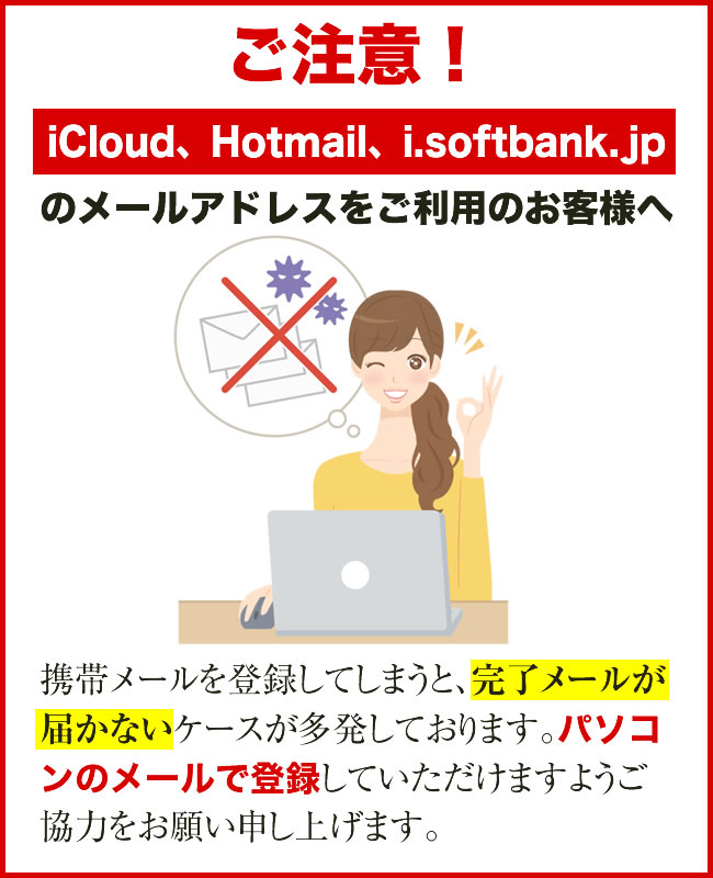 ※ご登録時のメールアドレスは お忘れにならないようにお願いいたします。