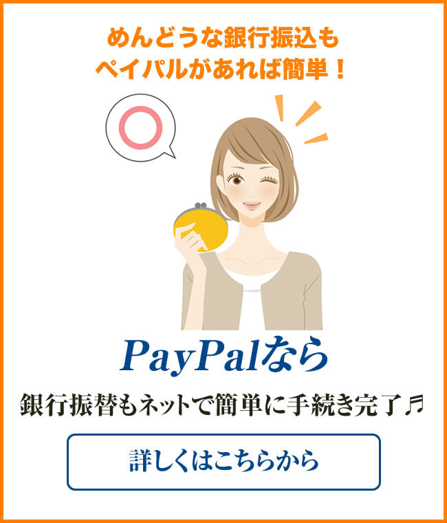 お支払方法は、PayPal(クレジットカード)と銀行振込が可能です。決済は『PayPal』の決済サー ビスを経由するため弊社にカード情報等が残る事は無く、セキュリティーも万全です。パソコン、スマートフォン・タブレット端末から決済することが可能です。