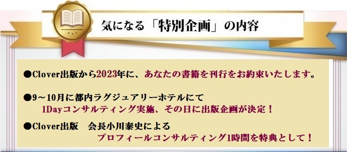 このページに訪れてくださった、あなたへ ご利用規約 ※入力情報の送信前にご確認をお願いします※ ご入力頂いたメールアドレス宛に株式会社Clover出版から、広告を含むご案内のメールをお送りする場合があります。また、ご入力頂いた個人情報は、「個人情報の取扱いについて」の記載に基づいて適切に管理します。ご案内メールの送信と、「個人情報の取扱いについて」に同意の上、入力情報を送信して下さい。