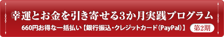ですので、このプログラムの価格は「お金を引き寄せる」ことに特化して提供するサービスのため、月額1,980円(税込)ですが、3か月継続いただくことを前提に加入してください。 そのため月額1,980円ごとに毎月お支払いただけるようにしています。(PayPal決済)。また、はじめから3か月必ずやってみる!という方には、お得な一括払い方法も用意させていただきました。