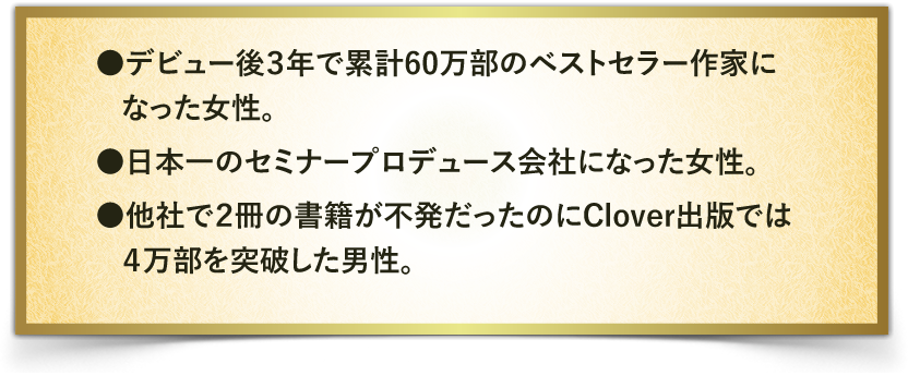 過去の出版で思うような結果を出せなかった著者を再生したりしてきました。